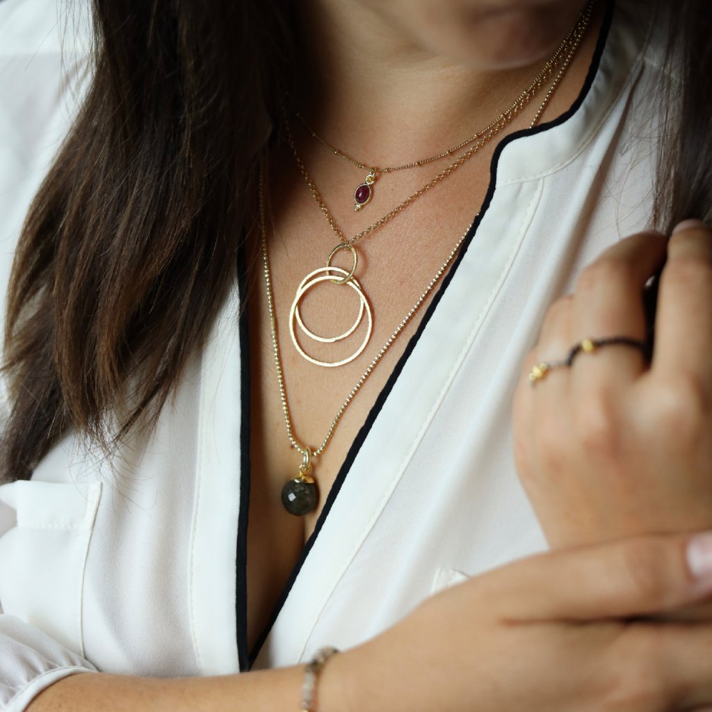 Kruhy na řetízku, jsou pozlacené stříbro 24K (925), délka řetízku je volitelná, velikost kruhů 3 cm.